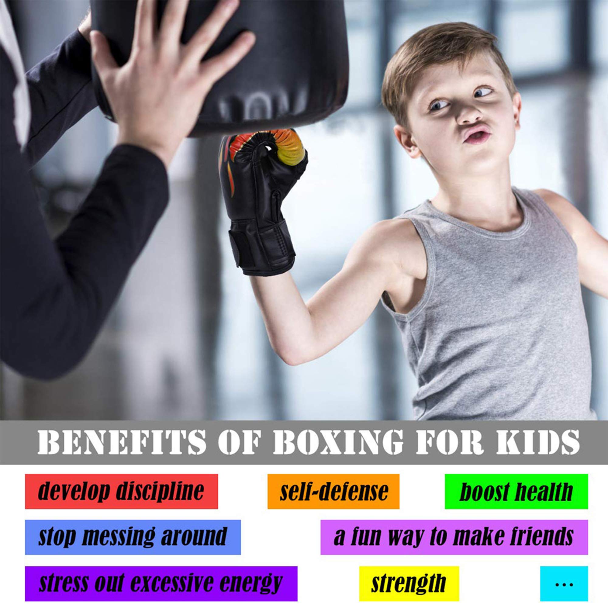 Children S Boxing Gloves Age 3 11 Years Training Kickboxing Gloves Flame Style For Boys Girls Junior Youth Toddlers Black Amazon De Sports Outdoors
